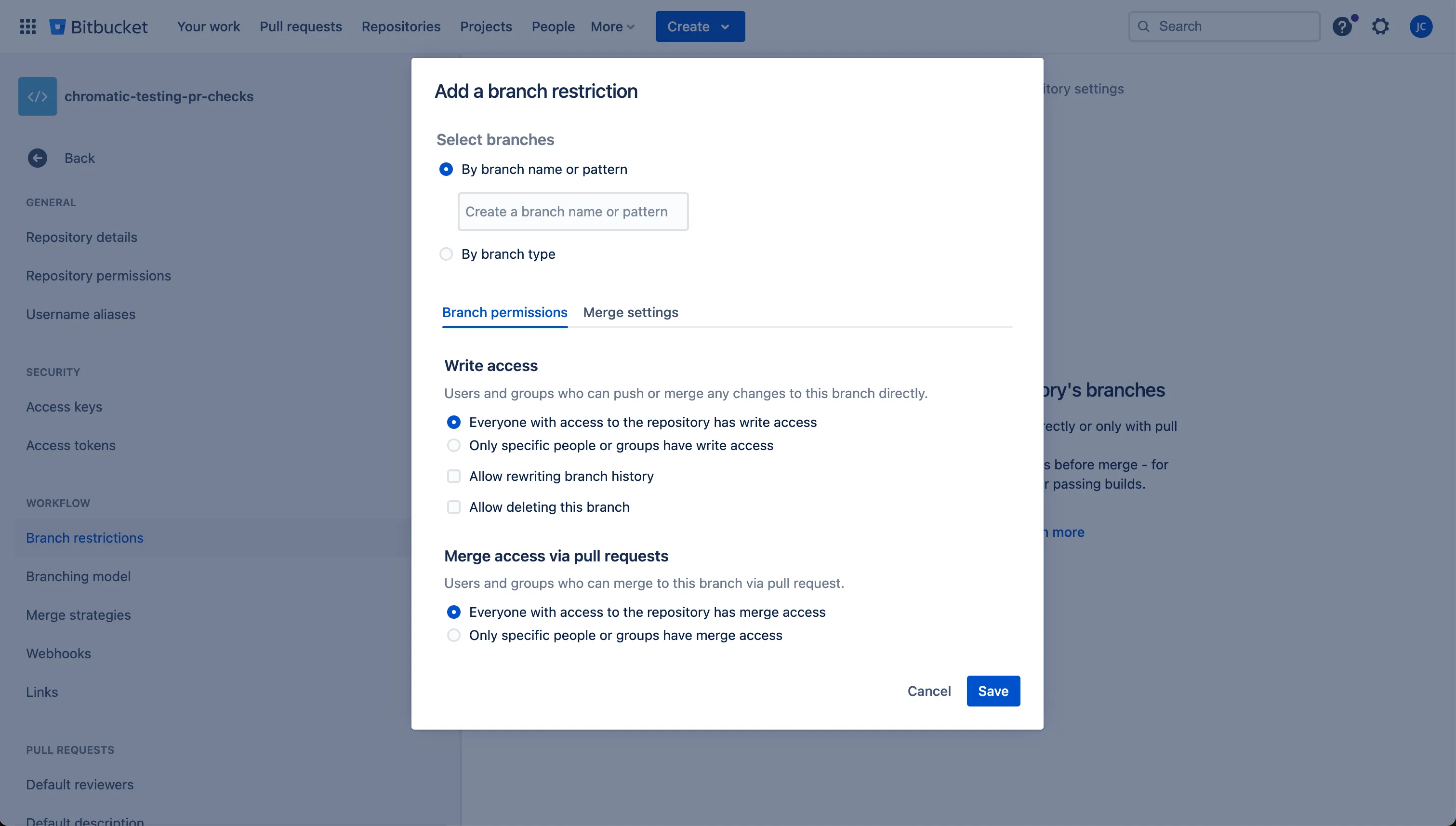 With BitBucket, some merge checks are already in place by default for pull requests. You can adjust that behavior with a custom configuration. Check out the following links for more information: